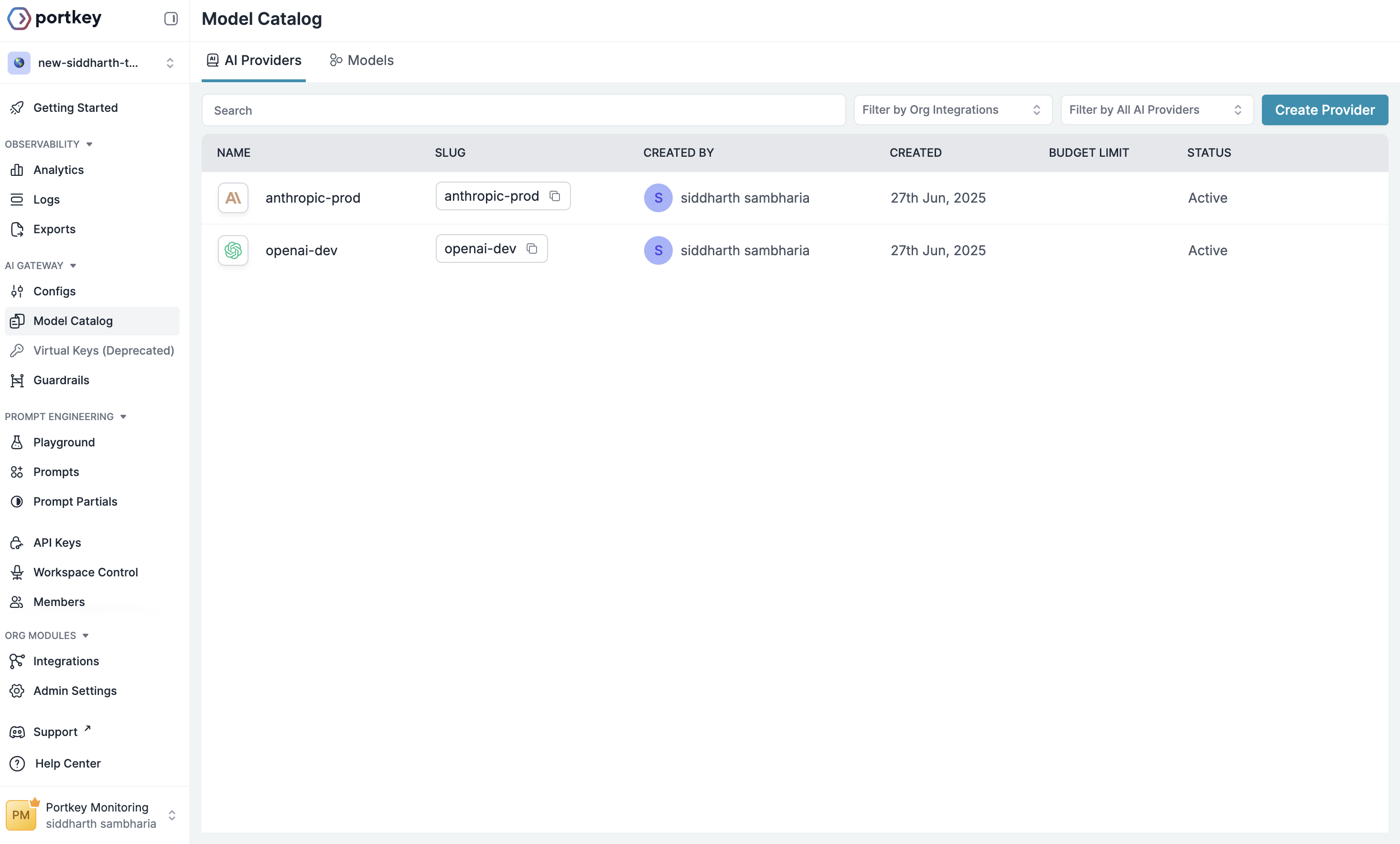 Model Catalog enables you to have granular control over LLM access at the team/department level. This helps you:- Set up budget limits
